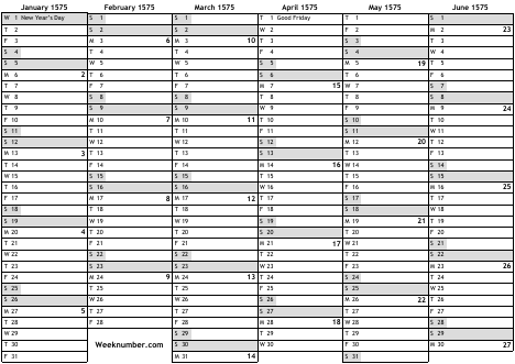 1575 calendar