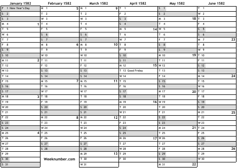 1582 calendar