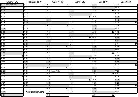 1649 calendar
