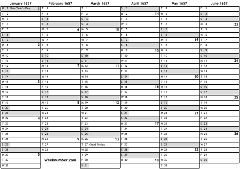 1657 calendar