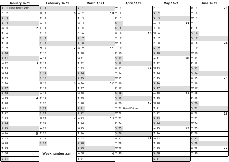 1671 calendar