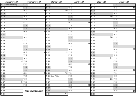 1687 calendar