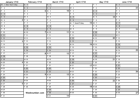1710 calendar