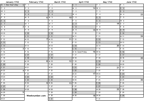 1742 calendar