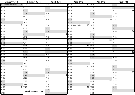 1748 calendar