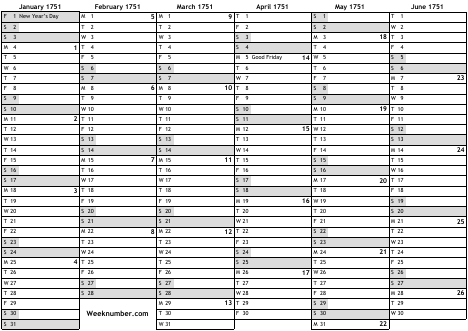 1751 calendar