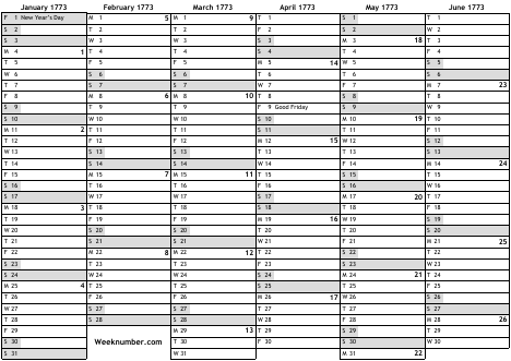 1773 calendar