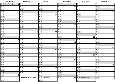 1877 calendar
