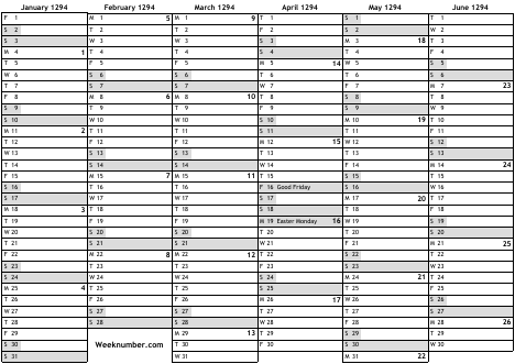 1294 calendar