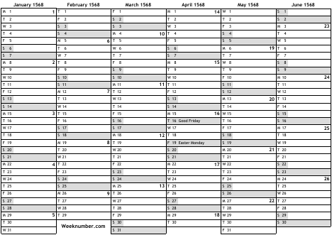 1568 calendar