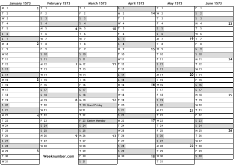 1573 calendar