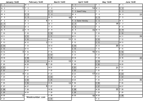 1640 calendar