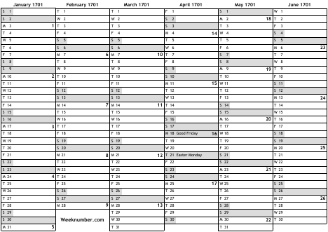 1701 calendar
