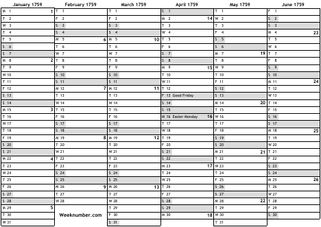 1759 calendar